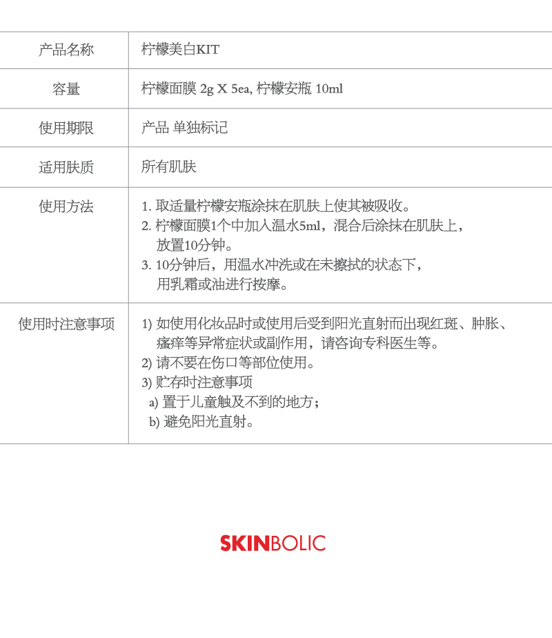 柠檬面膜 2g X 5ea, 柠檬安瓶 10ml